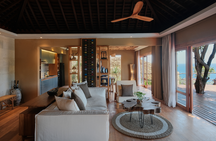 Located on the front row of villas with a lower ground level, this villa provides direct and uninterrupted views of the ocean. Designed for ultimate relaxation, it features a private pool, open living area, and a luxurious bathtub facing the ocean